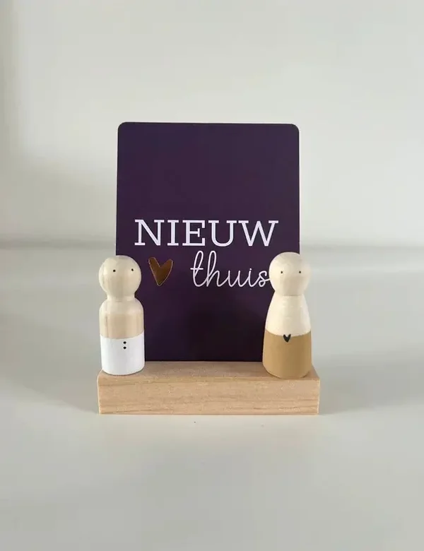 Op zoek naar een leuk cadeautje voor iemand die een nieuwe woning heeft? Deze handgemaakte pegdoll in een doosje, inclusief een mooi kaartje, is het perfecte cadeautje! 🎁🤎